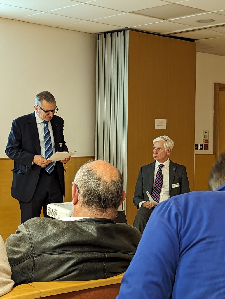 The customary pointed questions were posed by John Rigby, on behalf of the society. 18 people stayed for dinner, where (on our table at least) we enjoyed wide ranging discussions panning from politics to house moves, from ultramarathons to international relations.
