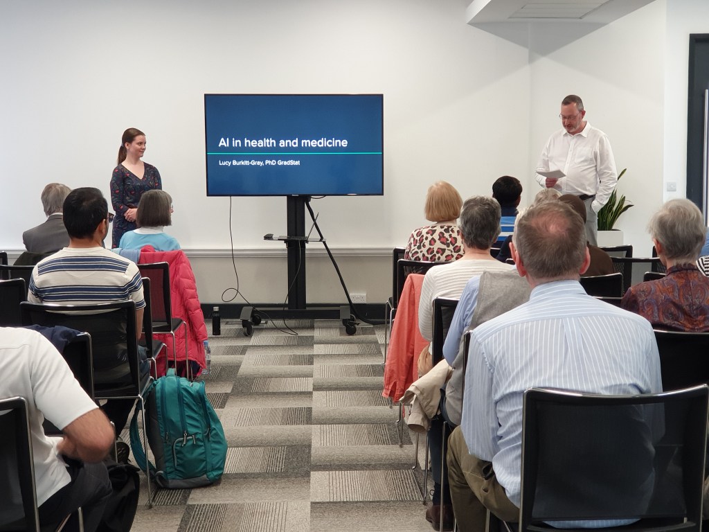 This talk gathered a large group of MSS members and guests. We listened with great interest to the history of AI applications in Health and Medicine, getting to know, among others, possibilities of MYCIN, CASNET, DXplain, DeepQA, MANDY and the use of completely modern AI tools, learning about their strengths and weaknesses.