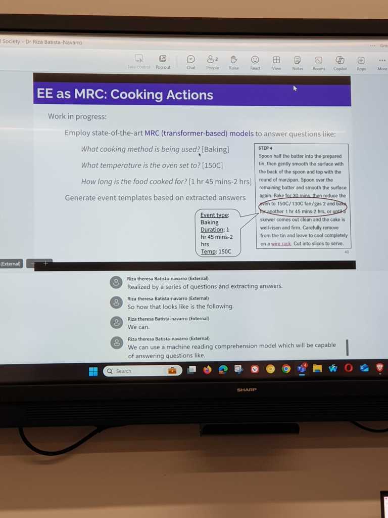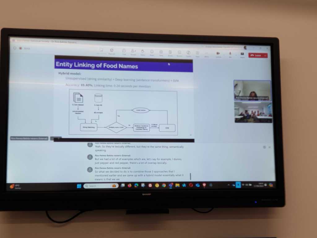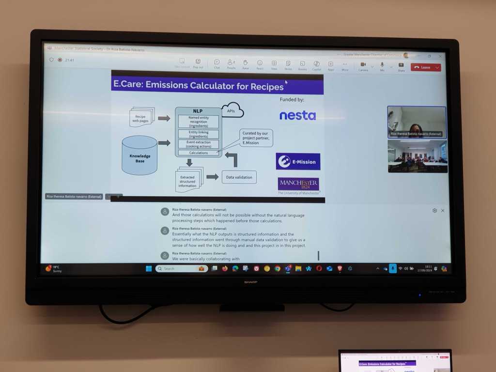 Our guest, Dr Batista-Navarro, specialist in Text Mining at the Department of Computer Science at the University of Manchester introduced us to her team’s research on increasing the conscious choice of high-carbon food substitutes in everyday culinary decisions of the UK population, in order significantly to reduce the impact of CO2 on climate change. We learned that food is the third largest source of CO2 emissions and that these emissions can be reduced at an individual level immediately, without significant costs.